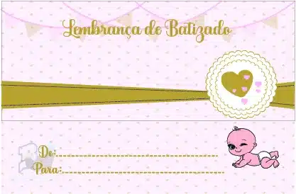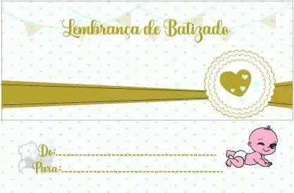 Com envelope prenda impresso com o texto Lembrança de Batizado’ e desenho relacionado.