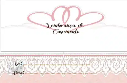 Com envelope prenda impresso com o texto Lembrança de Casamento’ e desenho relacionado.
