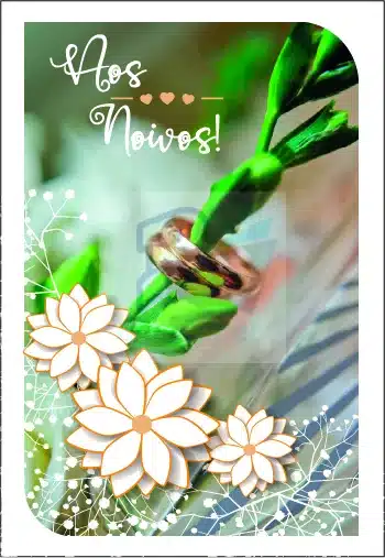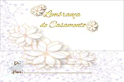 Com envelope prenda impresso com o texto Lembrança de Casamento’ e desenho relacionado.