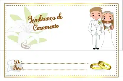 Com envelope prenda impresso com o texto Lembrança de Casamento’ e desenho relacionado.