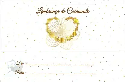 Com envelope prenda impresso com o texto Lembrança de Casamento’ e desenho relacionado.