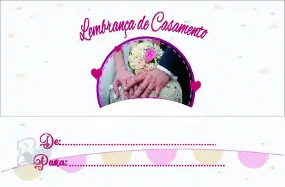 Com envelope prenda impresso com o texto Lembrança de Casamento’ e desenho relacionado.