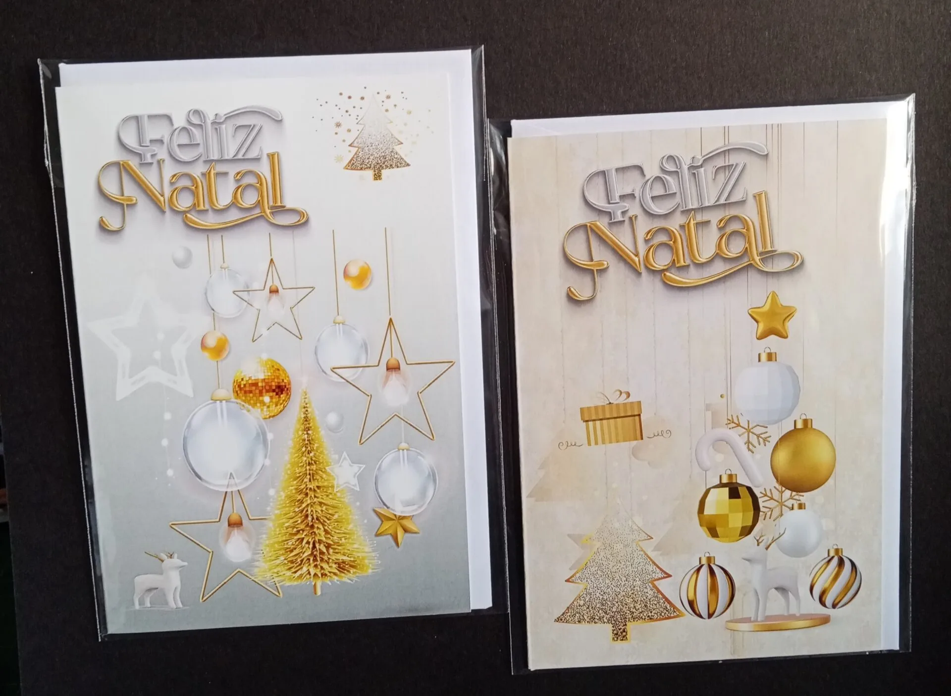 Cartão natalício com texto em português. Pack de 12 com envelope branco, em dois modelos.